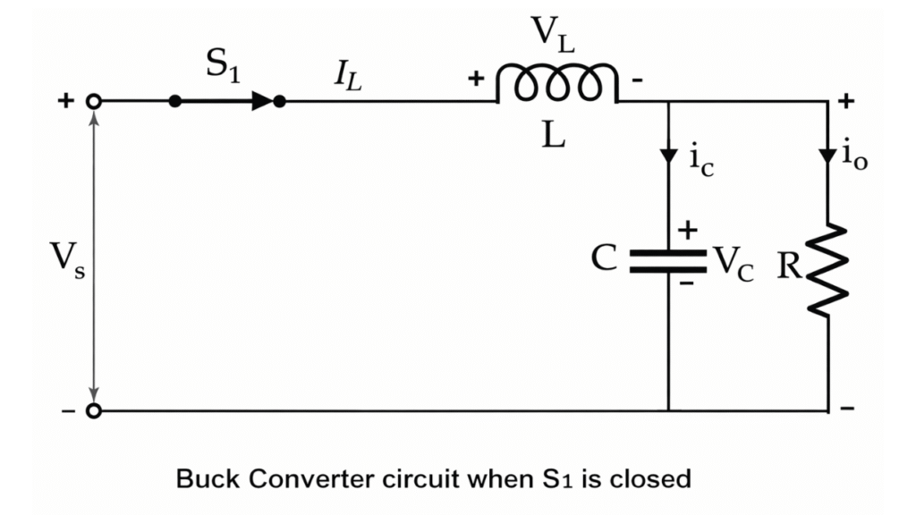 The buck converter is a fundamental and highly efficient DC–DC converter used for stepping down DC voltage levels. By controlling the duty ratio of the switching device, a precisely regulated output voltage can be obtained from a constant DC input. Owing to its simplicity, high efficiency, and excellent performance, the buck converter remains one of the most important building blocks in modern power electronic systems.
