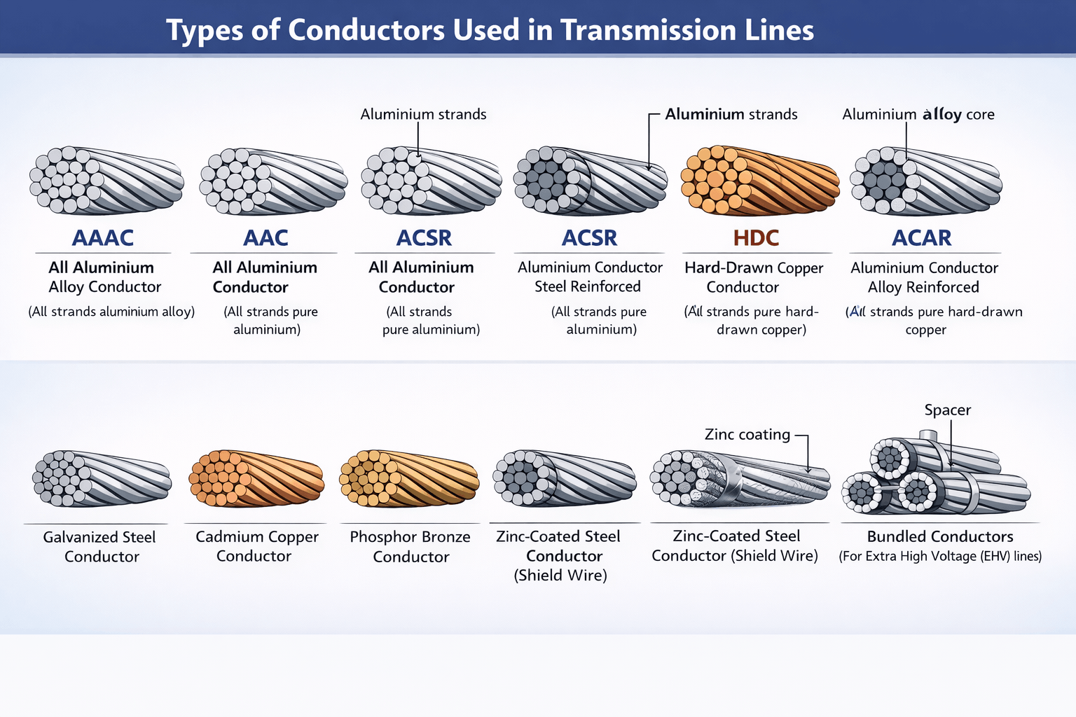 Types of Conductors Used in Transmission Lines
