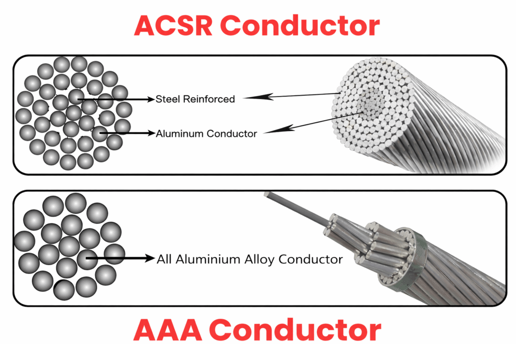 AAAC is manufactured from aluminium alloy to improve tensile strength and corrosion resistance. It is suitable for medium-span transmission lines and for use in coastal or polluted environments. These conductors provide better durability than AAC while maintaining reasonable conductivity. AAAC is widely preferred in corrosive areas.
