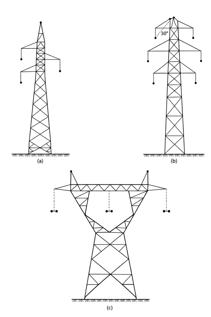 | Guyed or stayed tower | Mainly 132 kV and above | Used for high and extra high voltage transmission lines to reduce weight and cost of structure, especially suitable for straight runs and remote areas. |
