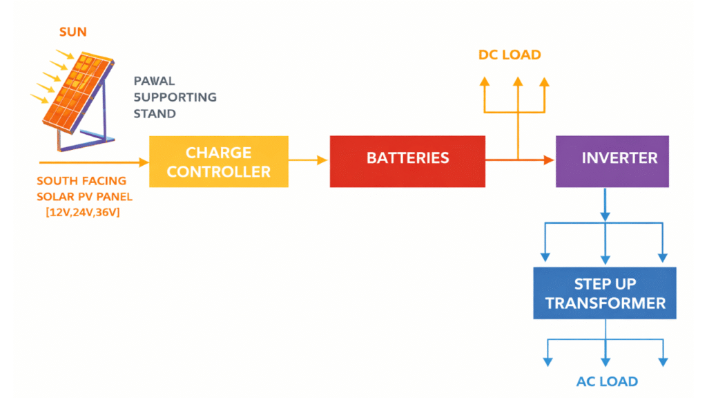 This system is suitable for areas where grid supply is unavailable or unreliable.
