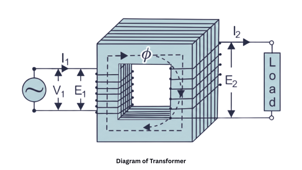 - Limbs and Yokes: The vertical portions where the windings are placed are called limbs (or legs), while the horizontal pieces that connect the limbs and complete the magnetic path are called yokes.